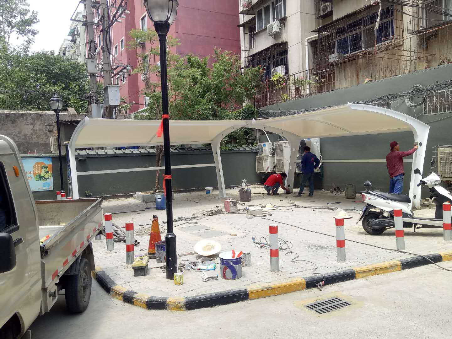 > 蚌埠老旧小区改造膜结构车棚工程